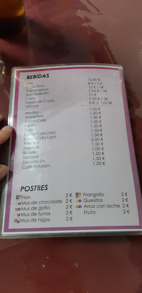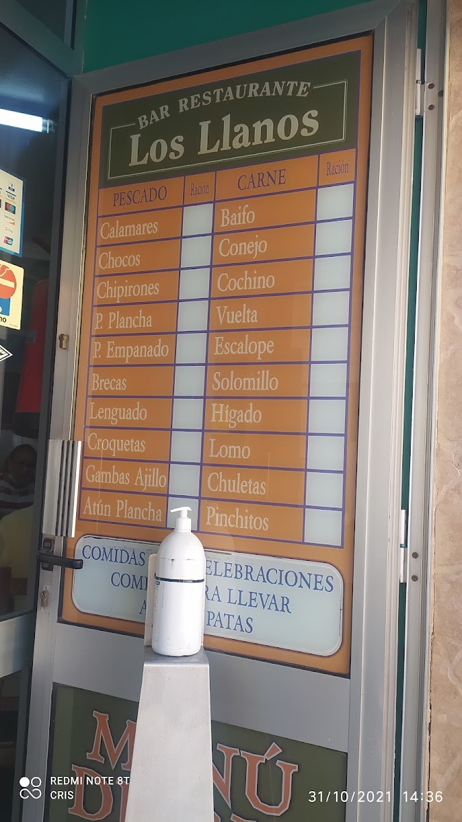 Introducing the Menu: Bar Los Llanos